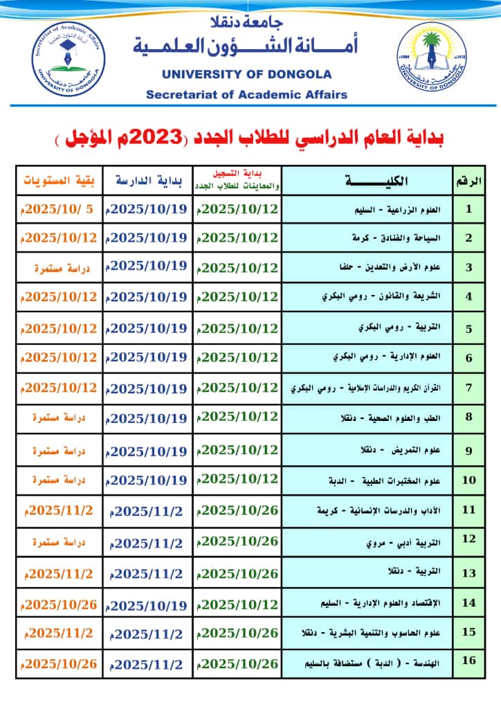 بداية العام الدراسي للطلاب الجدد(2023م) المؤجل
